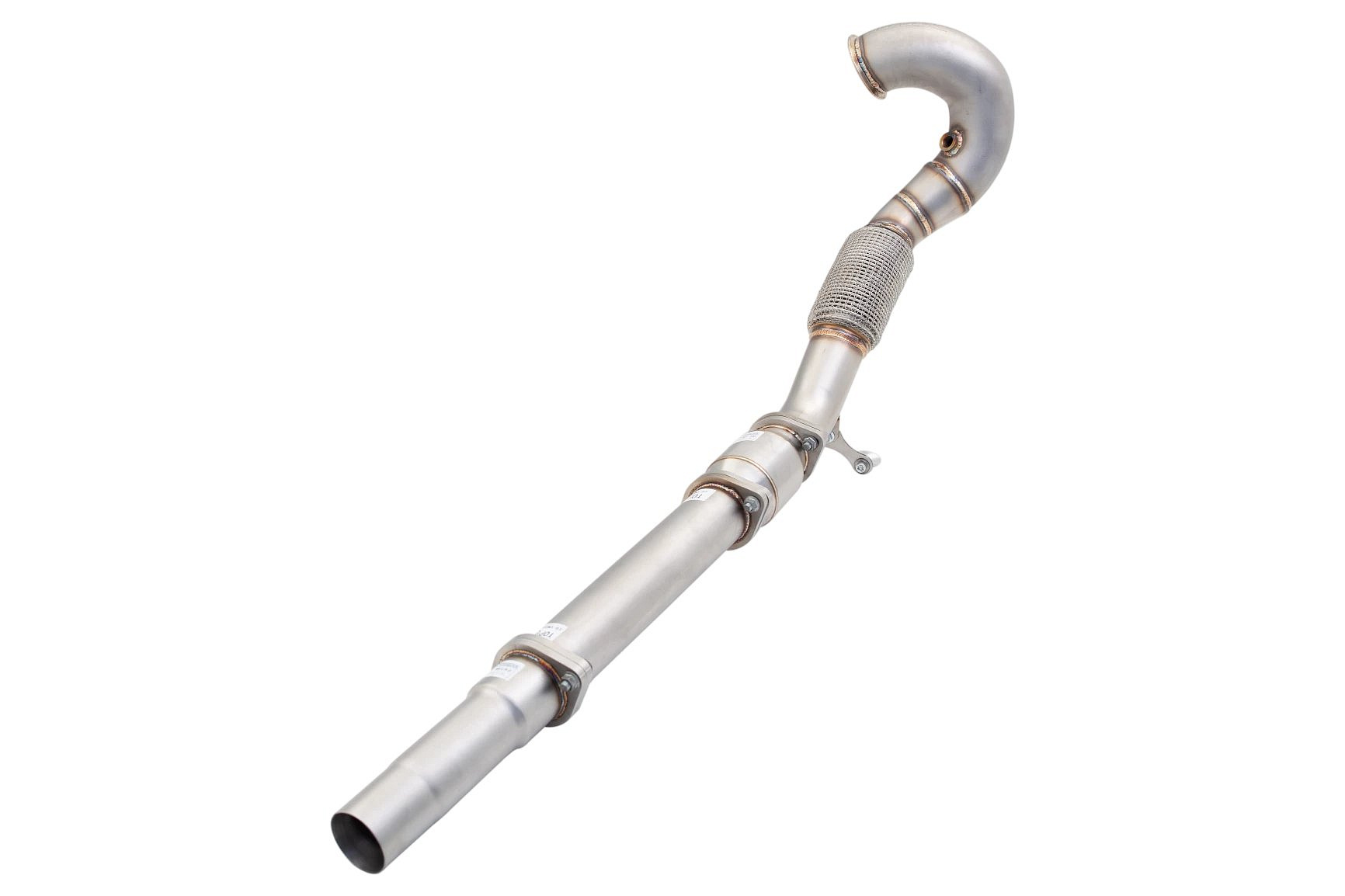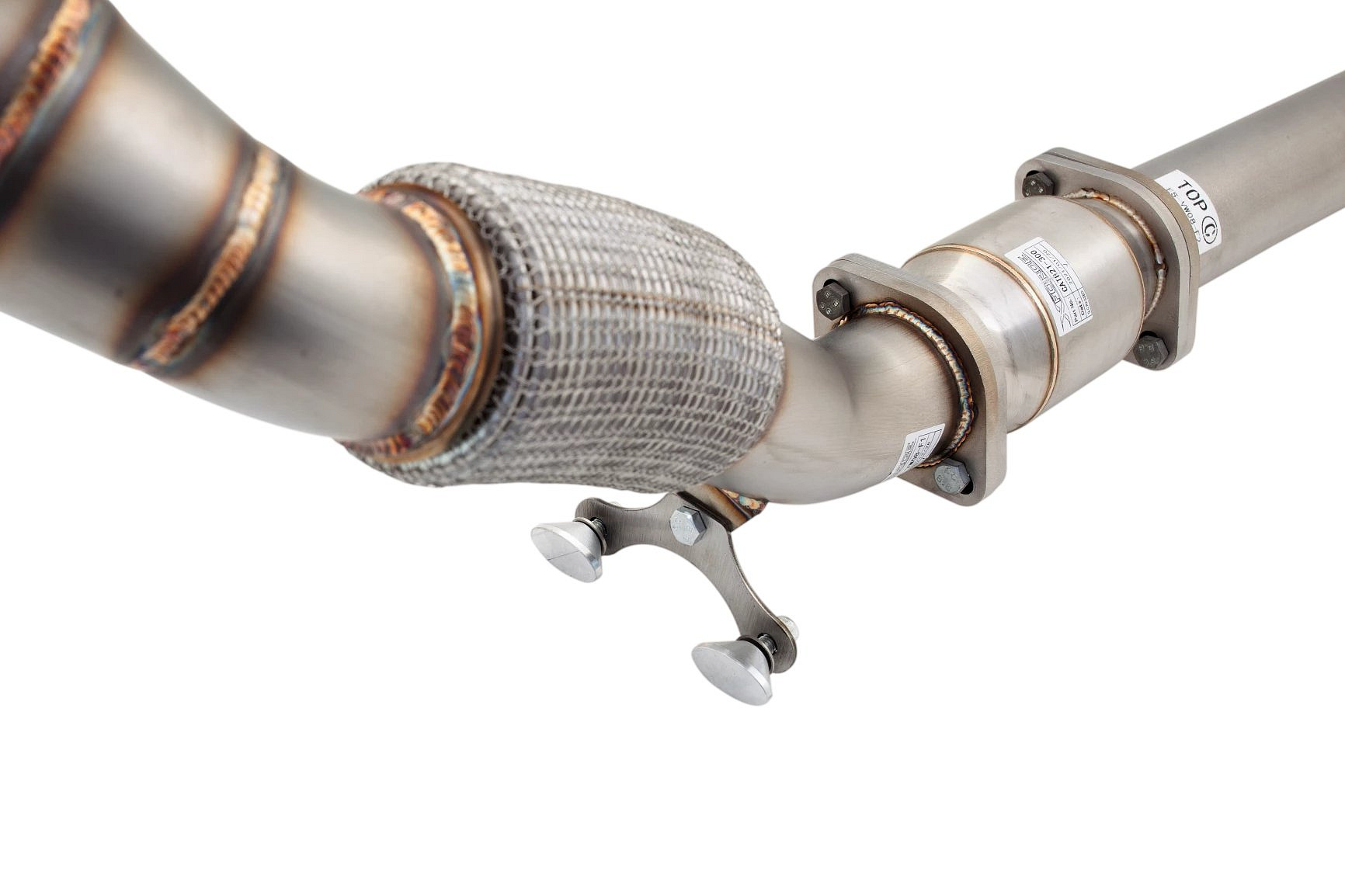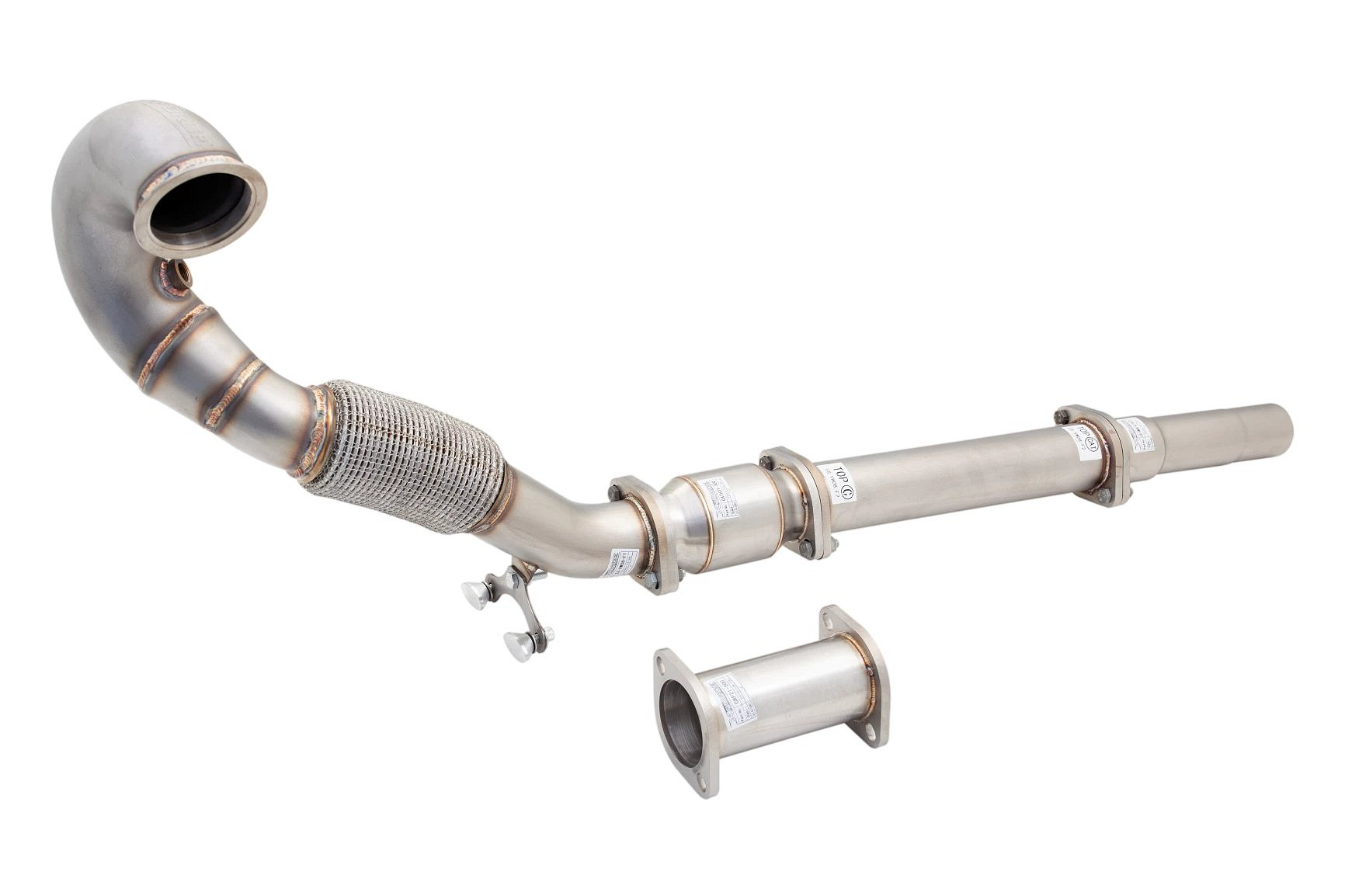 Downpipe je vyroben z nerezové oceli třídy 304, má větší průměr a obsahuje sportovní katalyzátor s vysokým průtokem (200 cpsi) a nerezový flexibilní spoj pro snadnou montáž a spolehlivost.