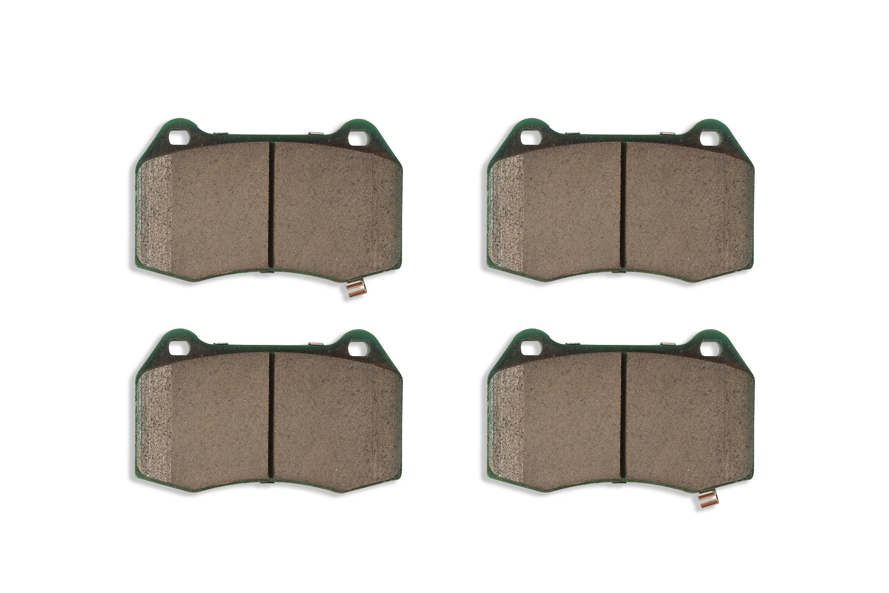 • Destičky Street Performance (SP): semi-metalická směs s vyšším třením (~0,35), žíhání (scorching) pro kratší záběh, stabilní výkon do 438 °C, NVH shimy + drážky/sražení hran pro nižší hluk a vibrace, delší životnost a méně prachu.