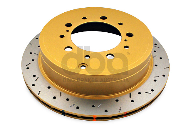DBA brzdový set kombinuje kotouče 4000 Series XS Gold (vrtané a drážkované) s brzdovými destičkami Xtreme Performance (XP). Výsledkem je atraktivní vzhled, vysoký počáteční účinek a spolehlivý výkon při extrémním zatížení.