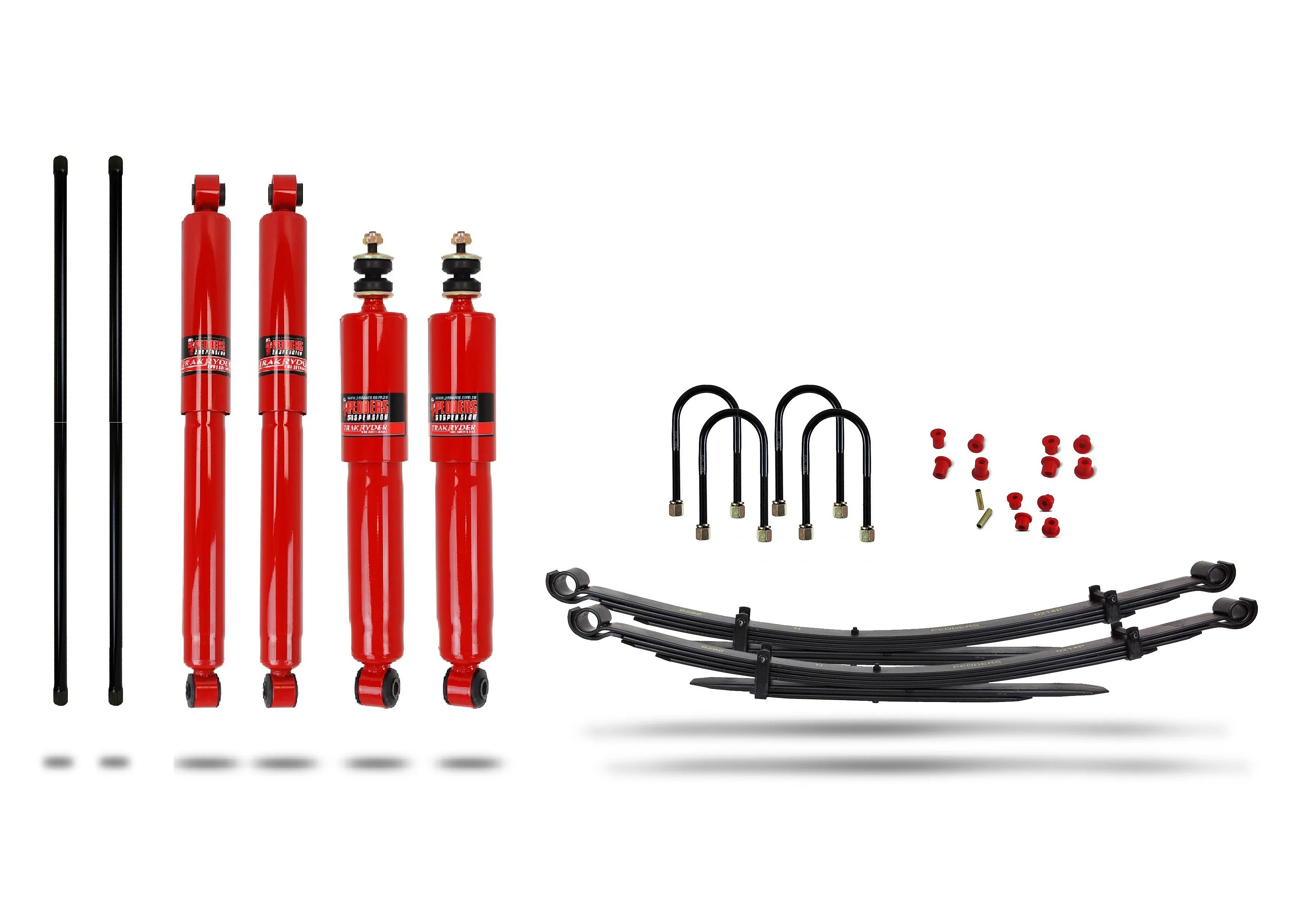 Chcete zvýšit svůj Ford Ranger? Pedders Suspension má pro vás řešení. Tato sada obsahuje špičkové tlumiče Pedders TrakRyder, přední torzní tyče, nové zadní listové pružiny a potřebné silentbloky a U třmeny pro montáž. Jedná se o naši základní sadu zvýšeného podvozku, která je určena především ke zvýšení vozu a zlepšení průchodnosti terénem. Pokud často převážíte těžký náklad nebo taháte přívěs, doporučujeme některou z našich sad pro vyšší zatížení. Tato sada zvýší vozidlo přibližně o 40 mm (viz skutečné rozměry níže), což znamená lepší světlou výšku a atraktivnější vzhled. Umožňuje použití větších pneumatik. Uvedené rozměry platí pro sériové vozidlo. Pokud máte vpředu další vybavení, jako je naviják nebo ochranný rám, výsledná výška se může lišit. V takovém případě nás kontaktujte, může být potřeba dodat jiné pružiny. Pro vozy, které jsou trvale zatížené, doporučujeme některou z našich sad pro vyšší zatížení. Tyto komponenty nahrazují původní díly. Není nutné žádné další úpravy vozu. Po montáži důrazně doporučujeme provést seřízení geometrie pro optimální jízdní vlastnosti. Nejste si jisti, zda je tato sada pro vás ta pravá? Máte další dotazy? Kontaktujte náš tým Pedders, rádi vám poradíme.