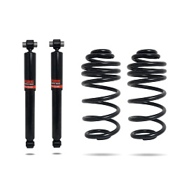 The kit replaces original rear springs and shocks directly with no other vehicle modifications needed. Installation is straightforward with bolt-in components. Professional wheel alignment after fitting is recommended to optimise vehicle handling and tyre wear.