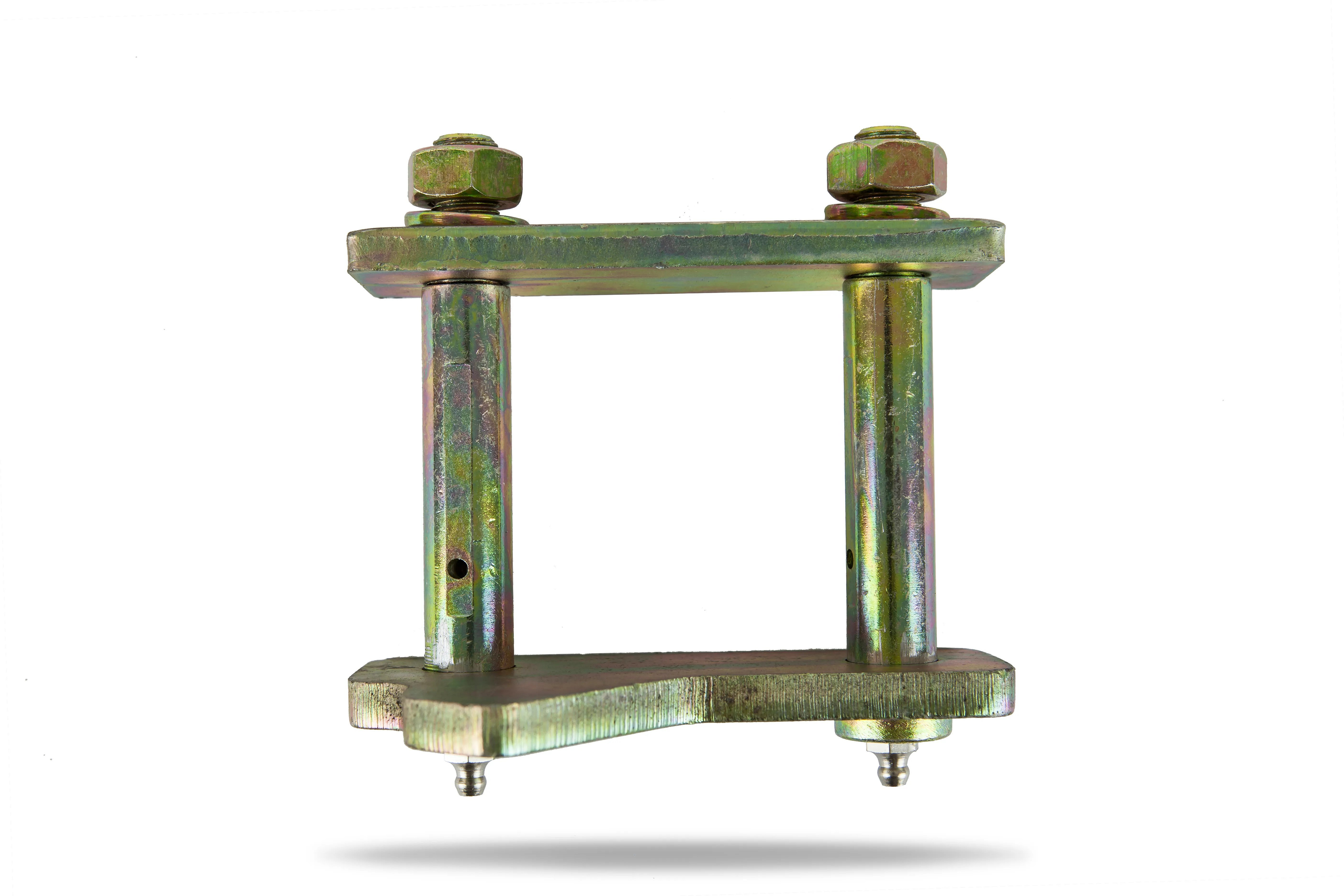 A leaf spring shackle is usually mounted at the rear of the leaf spring and this has two functions, it mounts the spring to the chassis and it allows for the vertical movement of the spring.
