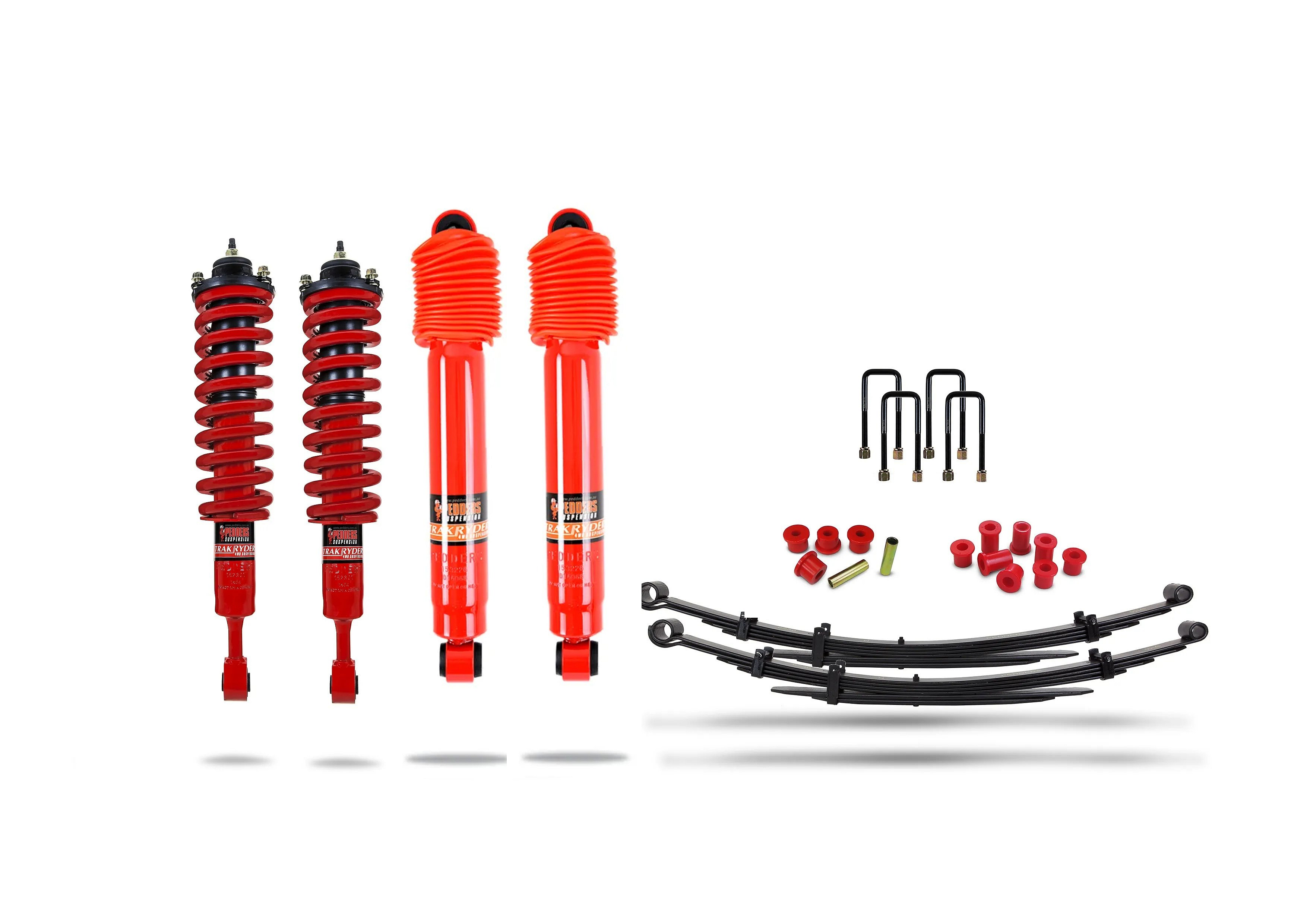 Pedders Suspension má pro vás řešení. Tato sada obsahuje naše vynikající tlumiče Pedders TrakRyder, přední pružiny, nové zadní listové pružiny a potřebné silentbloky a U šrouby pro jejich montáž.
