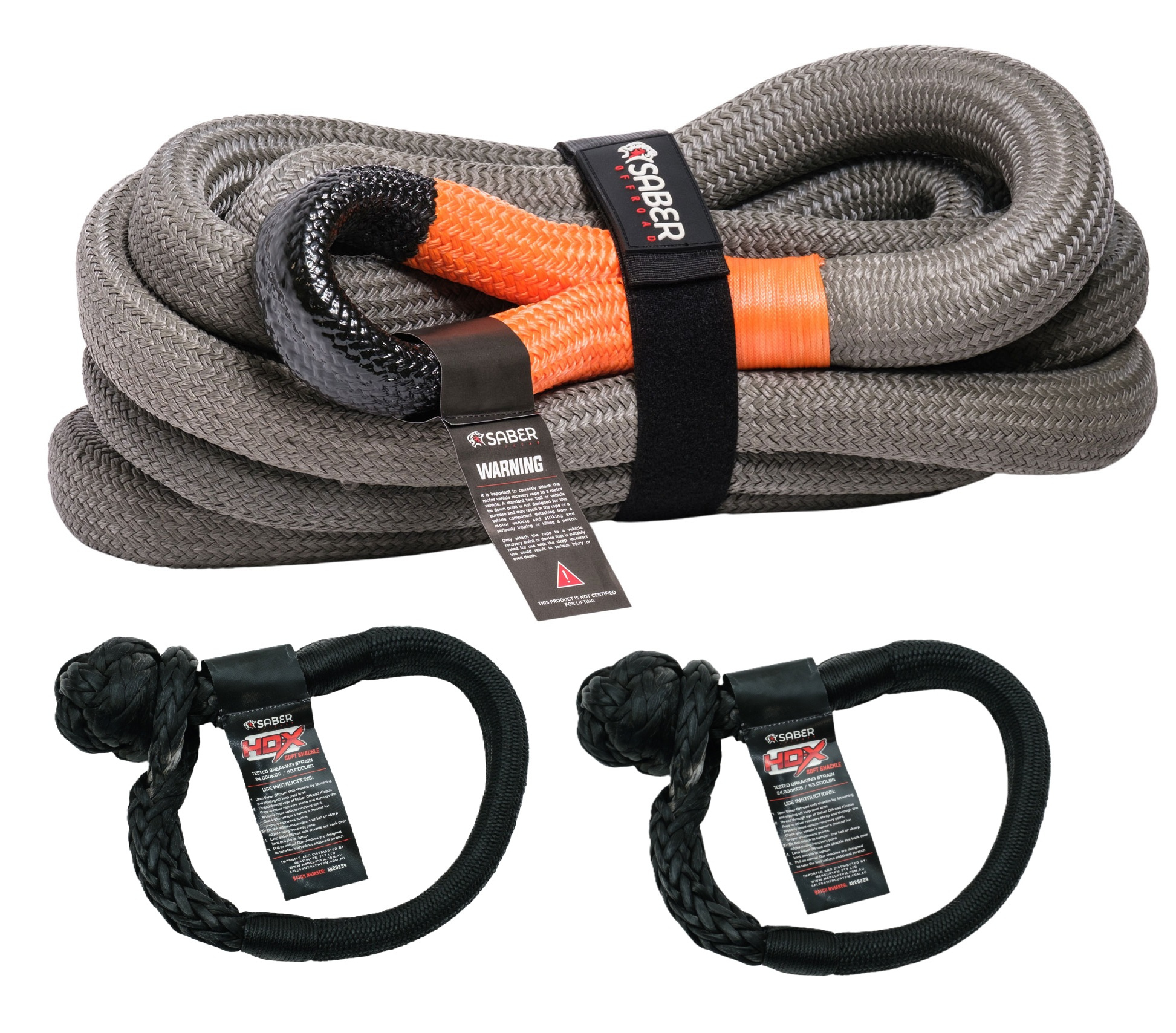When combining the Saber Offroad 24,000kg HDX Technora Bound Heavy Duty Soft Shackles with 22,00KG Heavy Duty Kinetic Recovery Rope, a far safer recovery will occur. There are examples everywhere of the failure of unrated (and in some cases rated) metal shackles failing during recovery, and the damage to the vehicles and most importantly those in and around the vehicles is horrendous. A well-matched, NATA tested, soft shackle and kinetic recovery rope virtually eliminate these risks.