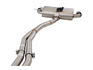 Díky snadné montáži na šrouby se systém přímo napojuje na originální downpipe a zajišťuje perfektní usazení. Dvojitý středový díl 2.5" poskytuje výbornou světlou výšku a optimalizuje průtok výfukových plynů. Proudění se následně sbíhá do jedné 3" trubky, která ústí do tlumiče Varex, což vytváří agresivní a výrazný zvuk.