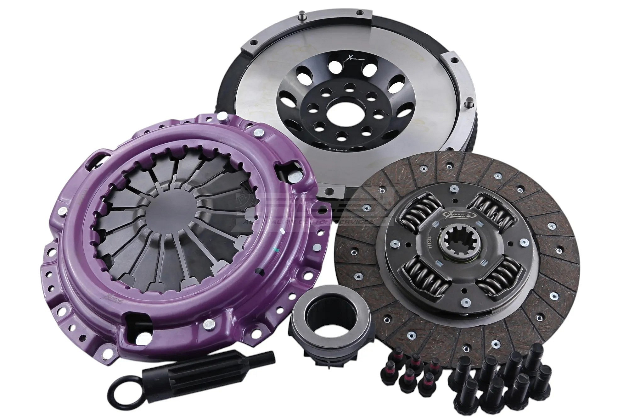 Kit IncludesPressure Plate, Clutch Disc, Release Bearing, Alignment Tool, Bolts, Flywheel