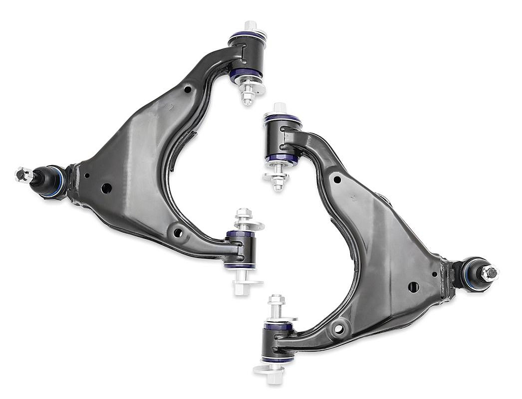 Kompletní sada spodních příčných ramen SuperPro vyřeší problémy s opravou způsobené zarezlými vnitřními šrouby odklonu, opotřebenými kulovými čepy a výměnou silentbloků.