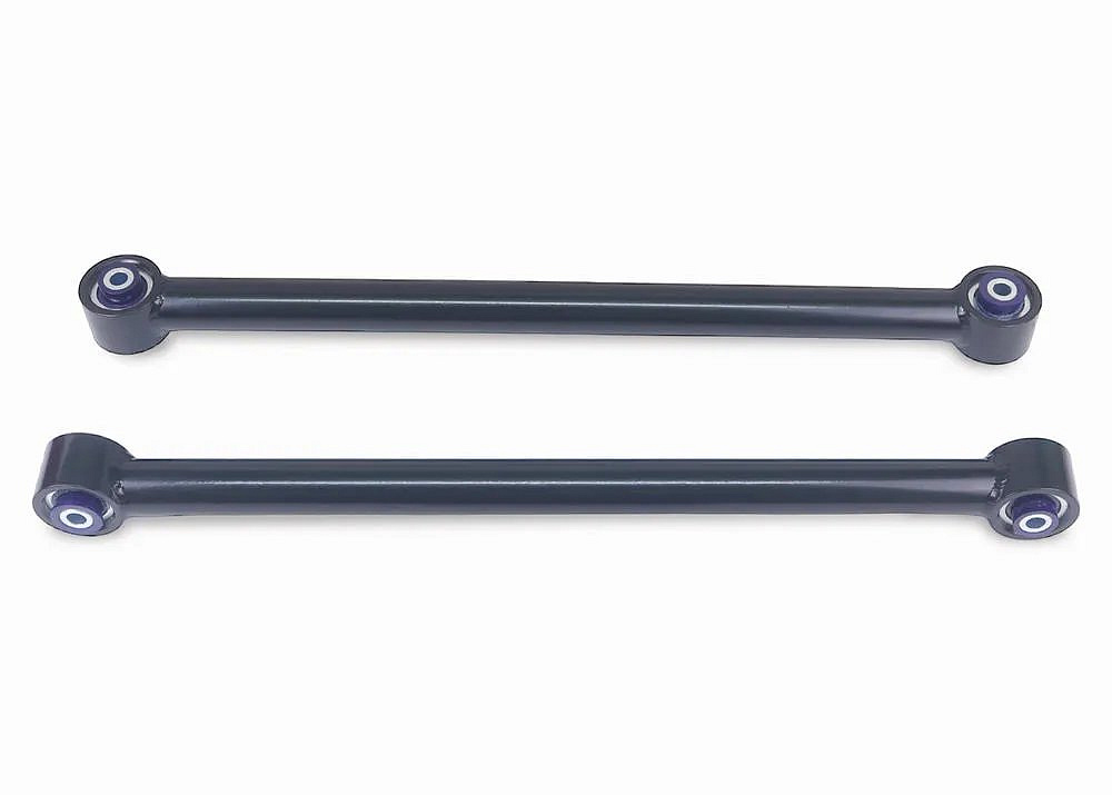 Tyto spodní vlečná ramena jsou delší než originální díly a jsou osazena polyuretanovým kulovým kloubem, který nabízí plnou pohyblivost bez negativních vlastností kovových kloubů v této pozici.