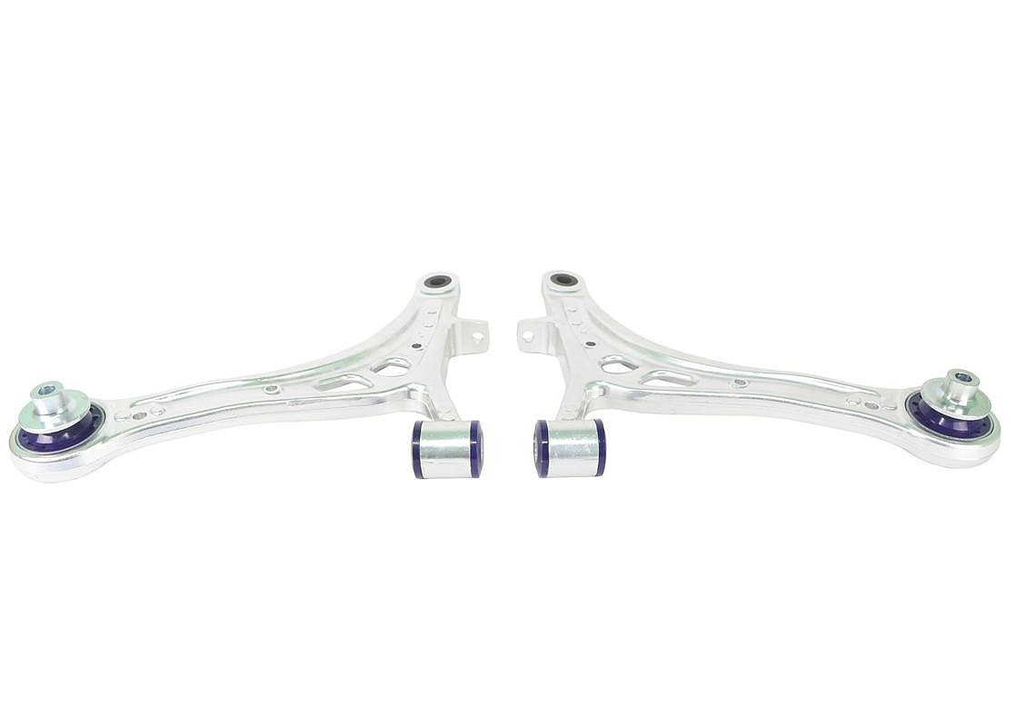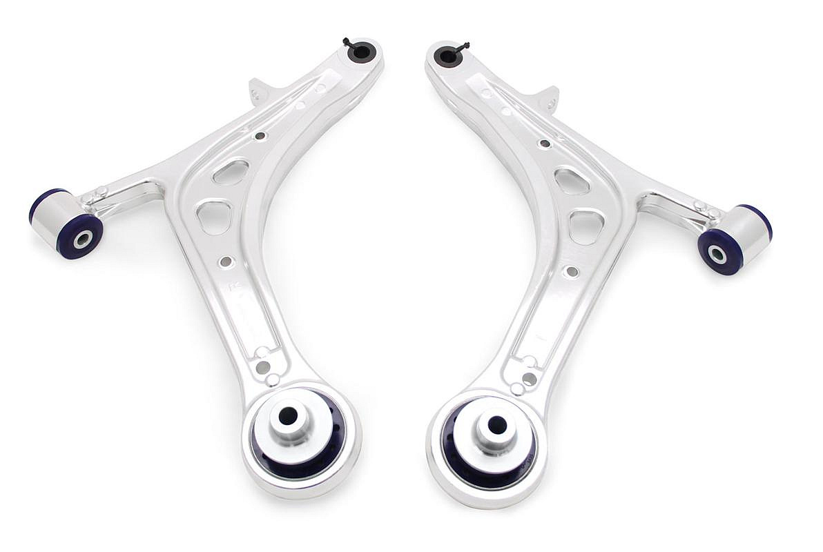 Hliníková ramena SuperPro jsou o 38 % lehčí než originální díly. Sestavy hliníkových ramen SuperPro zajišťují větší závlek, odklon a eliminují nežádoucí deformace. Osazeno zadním silentblokem SuperPro DuroBall pro maximální oporu, přesnost geometrie a zlepšení ovladatelnosti.