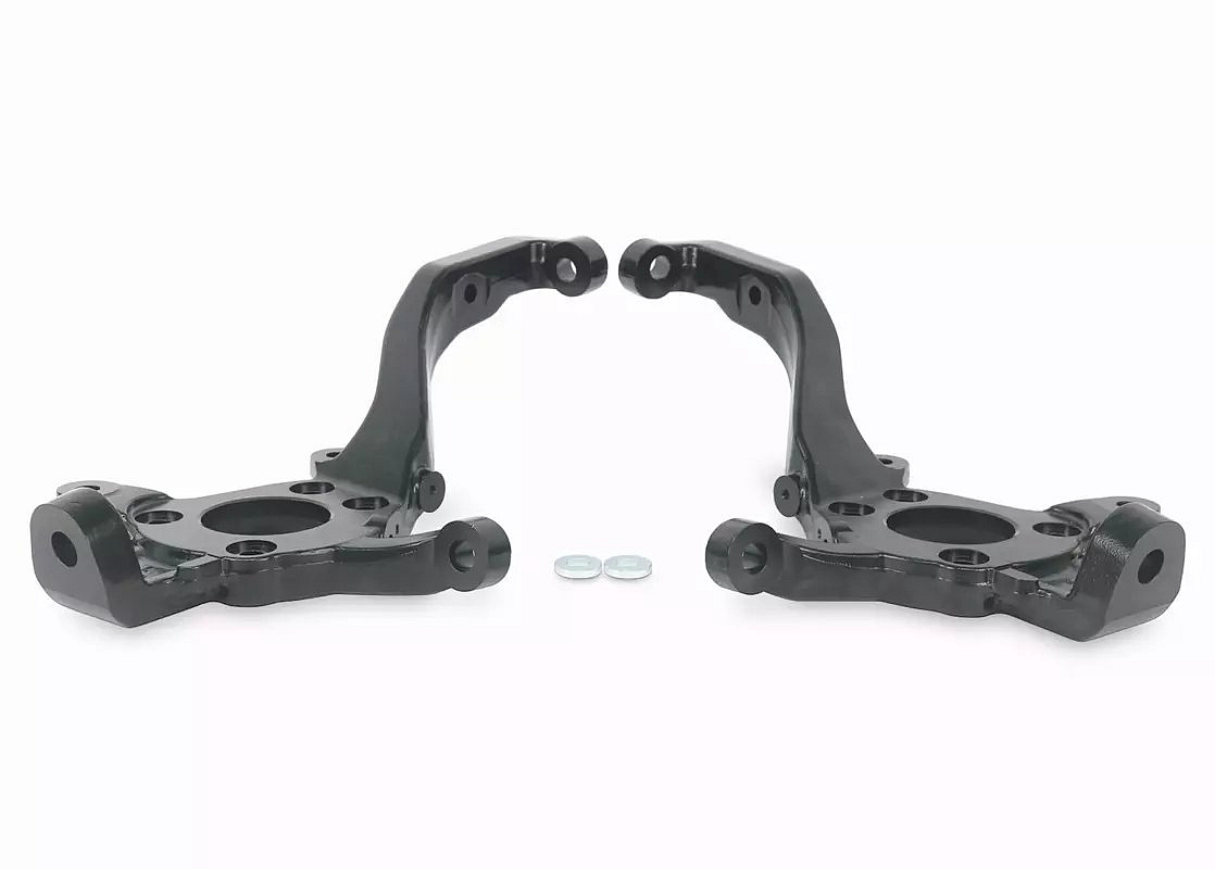 - Řeší skutečnou příčinu bump steer zvýšením uchycení řízení – což samotná horní ramena nedokážou