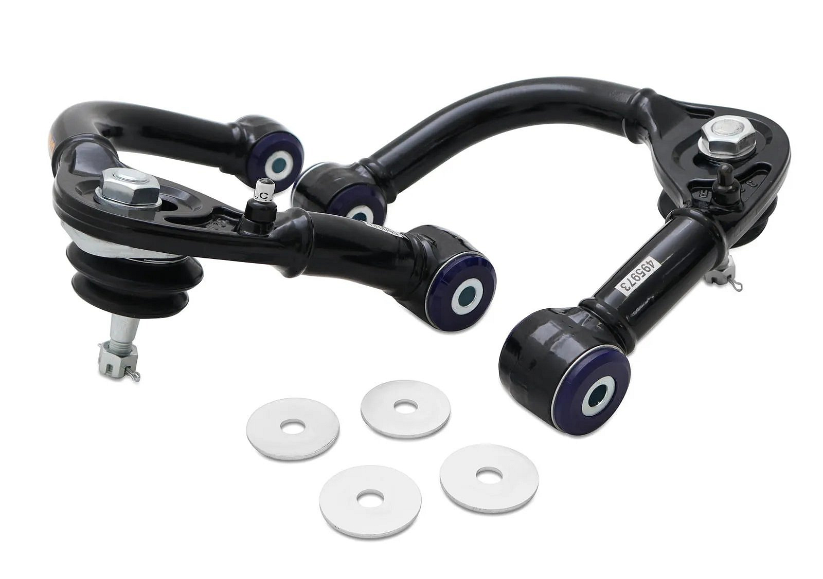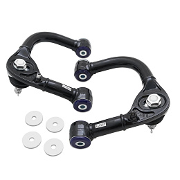 Nastavitelná horní příčná ramena s robustními, vysoce pohyblivými nastavitelnými kulovými čepy a polyuretanovými silentbloky SuperPro pro vozidla se zvýšením podvozku o 1 až 3 palce.