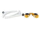 Tyto přední dolní ramena Whiteline jsou vyrobena z vysoce kvalitní slitiny, která nabízí značnou úsporu hmotnosti oproti originálním ramenům. Snížení hmotnosti ramene, které je částečně nespruženou hmotností, přináší podobné výhody jako lehké hliníkové kolo. Kromě toho Whiteline navrhl významné geometrické zisky s +0,5° záklonu a zlepšení proti zvedání, aby optimalizoval nastavení geometrie kol pro silniční a závodní výkon. Záklon zvyšuje dynamický negativní odklon na vnějším kole při zatáčení, což nabízí více přilnavosti bez zavádění opotřebení pneumatik spojeného s statickým negativním odklonem. Dále zvýšení záklonu zlepšuje trakci a zvyšuje samocentrovací efekt řízení. Když to všechno spojíte, malé zvýšení záklonu výrazně zlepšuje přilnavost a ovladatelnost přední části vozu. Změna geometrie zvedání a potápění umožňuje podvozku pracovat volněji. Zadní pouzdro Whiteline kombinuje vynikající mechanické vlastnosti syntetické elastomerové formulace s vysoce kvalitním uzavřeným ložiskovým sestavením, což umožňuje hladký pohyb ramene při pohybu kola nahoru a dolů. Doplňuje ho přední pouzdro využívající nadměrnou těžkou crush trubku, což vede k dramatickým zlepšením (více...)