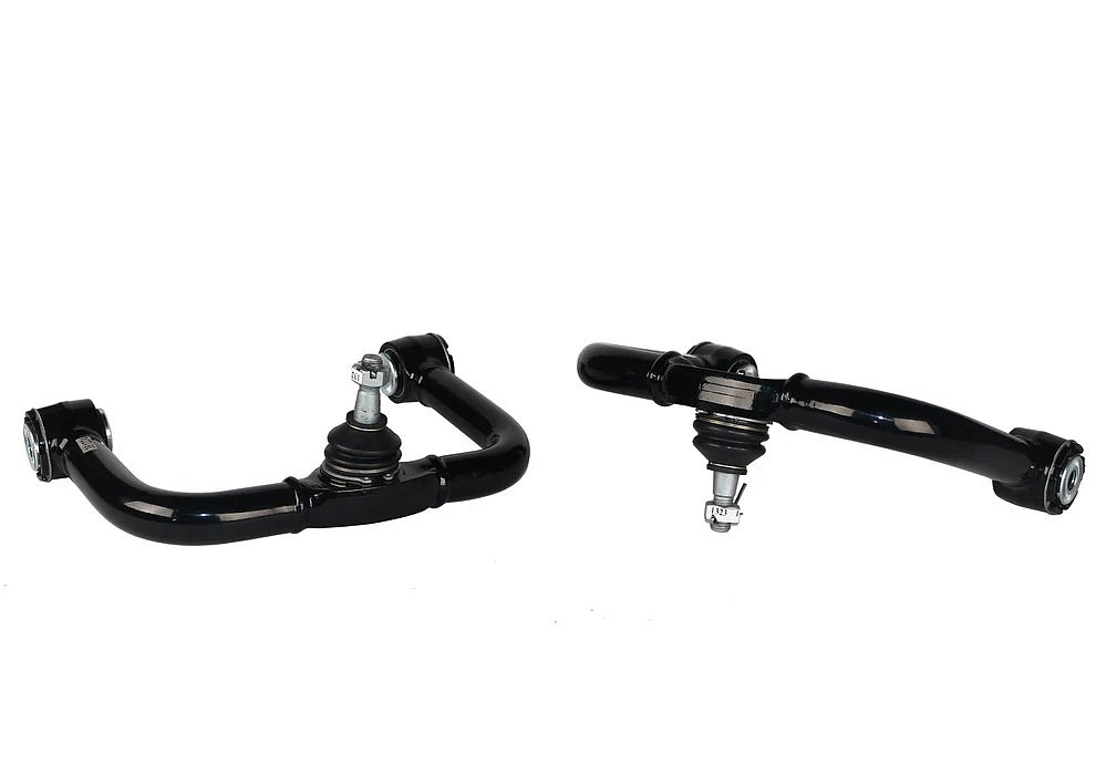 Přední horní rameno nápravy – pevný offset – Nissan Frontier 2005–2021 Jedním z nedostatků moderních předních nezávislých zavěšení (IFS) u vozů s pohonem 4x4 je omezený rozsah seřízení geometrie, což je ještě větší problém při zvýšení světlé výšky o více než 25 mm. V takovém případě se často objevují potíže s odklonem a záklonem, ale také s pohybem kulového čepu a nedostatečnou vůlí mezi ramenem a tlumičem při propružení i odlehčení. Nové horní rameno Whiteline s pevným offsetem je komplexním řešením pro vozy se zvýšením podvozku v rozmezí 30–70 mm. Nabízí navýšení záklonu v rozmezí +2,5 až +3,5 stupně a možnost zvýšení negativního odklonu až o 1,5 stupně (údaje platí pro zvýšení cca 50 mm/2 palce). Zároveň zajišťuje větší vůli k tlumiči a lepší pohyb ramene díky nové bezúdržbové technologii silentbloků GIIRO.