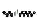 Kompletní servisní sada silentbloků pro listové pružiny, která obsahuje pouzdra pro přední i zadní oka listu a také pouzdra pro třmeny. Při vysokém nájezdu a častém zatížení dochází k nadměrnému opotřebení gumových silentbloků. Černé silentbloky Whiteline jsou navrženy pro maximální odolnost proti oděru, vysokou nosnost (ideální pro 4WD, užitkové vozy a tažení), pružnost, zvýšenou pevnost v tahu a vynikající odolnost vůči oleji, mastnotě, ozonu i povětrnostním vlivům.