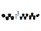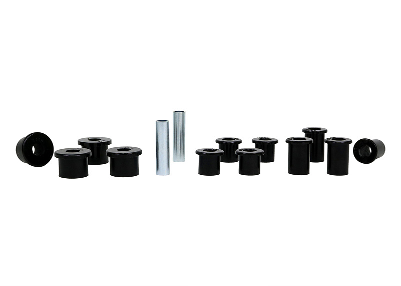 Kompletní servisní sada silentbloků pro listové pružiny, která obsahuje pouzdra pro přední i zadní oka listu a také pouzdra pro třmeny. Při vysokém nájezdu a častém zatížení dochází k nadměrnému opotřebení gumových silentbloků. Černé silentbloky Whiteline jsou navrženy pro maximální odolnost proti oděru, vysokou nosnost (ideální pro 4WD, užitkové vozy a tažení), pružnost, zvýšenou pevnost v tahu a vynikající odolnost vůči oleji, mastnotě, ozonu i povětrnostním vlivům.