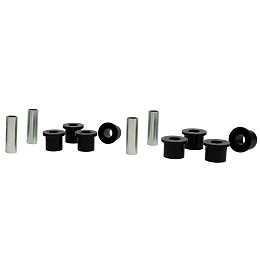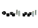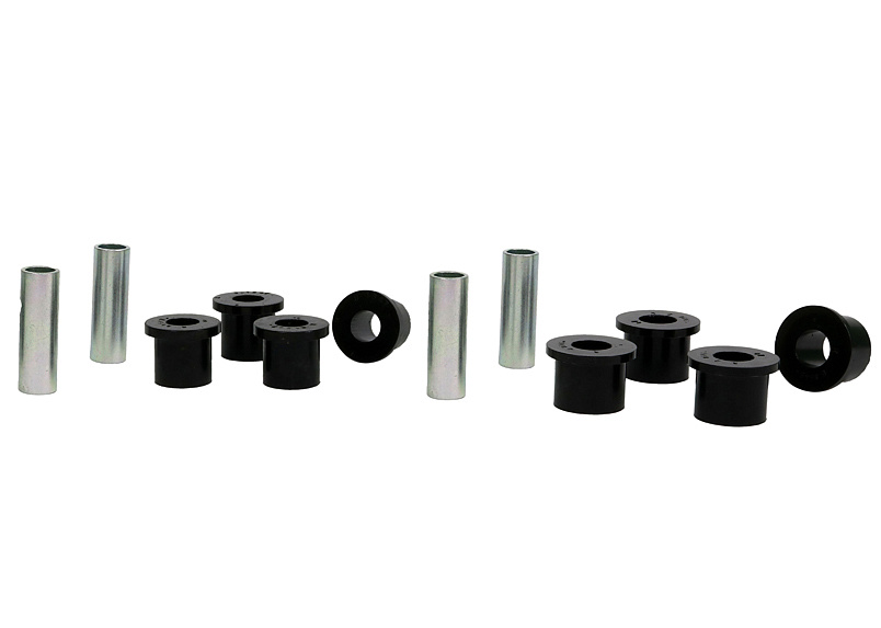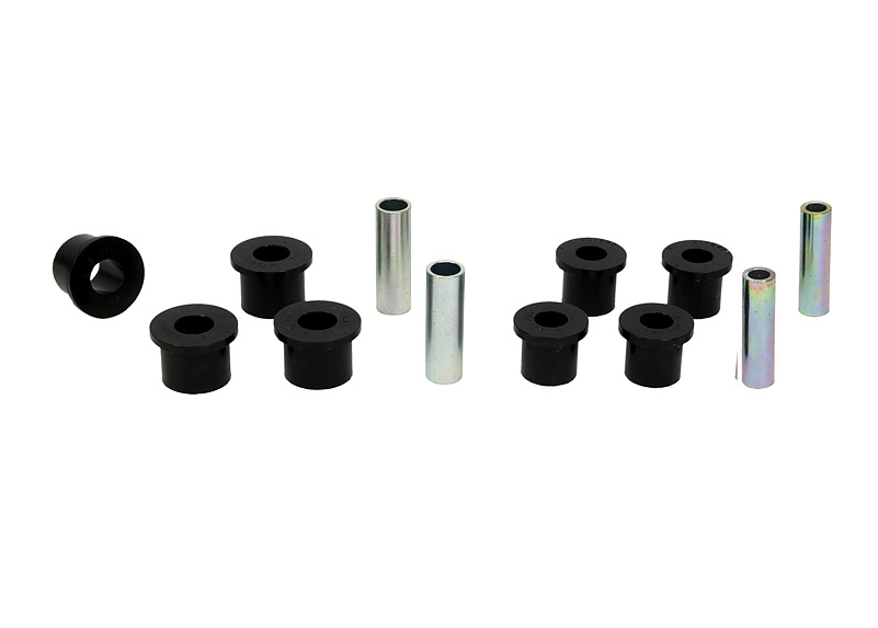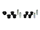 Kompletní servisní sada silentbloků pro listové pružiny, která obsahuje pouzdra pro přední i zadní oka listu a také pouzdra pro třmeny. Při vysokém nájezdu a častém zatížení dochází k nadměrnému opotřebení gumových silentbloků. Černé silentbloky Whiteline jsou navrženy pro maximální odolnost proti oděru, vysokou nosnost (ideální pro 4WD, užitkové vozy a tažení), pružnost, zvýšenou pevnost v tahu a vynikající odolnost vůči oleji, mastnotě, ozonu i povětrnostním vlivům.
