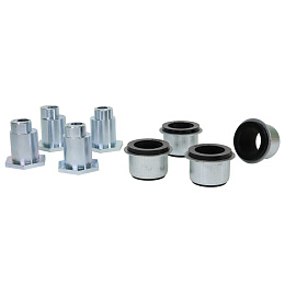 Sady odklonu Whiteline umožňují jemné nastavení odklonu pro optimální kontakt pneumatik, což vede ke zlepšení ovladatelnosti vozidla a prodloužení životnosti pneumatik. Tato sada je dodávána s dvojitě offsetovanými syntetickými elastomerovými silentbloky Whiteline, které mají základní vlastnosti zajišťující vynikající elasticitu, paměť a vysokou odolnost, což pomáhá udržovat preferovaná nastavení geometrie a zajišťuje lepší odezvu řízení.