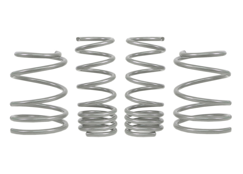 Whiteline pružiny zlepšují jízdní vlastnosti vozu při zachování bezpečnosti a komfortu. Tento kit obsahuje přední pružiny s tuhostí 5,4 kg/mm (302 lb/in), které snižují světlou výšku o 10 mm, a zadní pružiny s tuhostí 5,6 kg/mm (313 lb/in), které zajistí snížení o 10 mm. Snížením těžiště vozu a díky unikátní progresivní konstrukci vinutí se zlepšují nejen jízdní vlastnosti, ale i celkový vzhled vozu. Pružiny jsou vyvinuty a vyrobeny v Evropě z nejkvalitnějších materiálů, s precizní povrchovou úpravou a v nejpřesnějších tolerancích pro zajištění dokonalé montáže. Whiteline pružiny jsou navrženy pro optimální souhru s originálními i sportovními tlumiči. Pro maximální přilnavost doporučujeme kombinovat s Whiteline stabilizátory a Essentials kitem pro špičkové jízdní vlastnosti a výkon vozu.