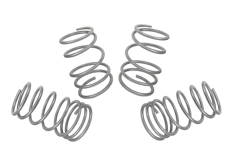 Whiteline pružiny zlepšují jízdní vlastnosti vozu při zachování bezpečnosti a komfortu. Tento kit obsahuje přední pružiny s tuhostí 3,5 kg/mm (196 lb/in), které snižují světlou výšku o 30 mm, a zadní pružiny s tuhostí 2,8 kg/mm (157 lb/in), které zajistí snížení o 30 mm. Snížením těžiště vozu a díky unikátní progresivní konstrukci vinutí se zlepšují nejen jízdní vlastnosti, ale i celkový vzhled vozu. Pružiny jsou vyvinuty a vyrobeny v Evropě z nejkvalitnějších materiálů, s precizní povrchovou úpravou a v nejpřesnějších tolerancích pro zajištění dokonalé montáže. Whiteline pružiny jsou navrženy pro optimální souhru s originálními i sportovními tlumiči. Pro maximální přilnavost doporučujeme kombinovat s Whiteline stabilizátory a Essentials kitem pro špičkové jízdní vlastnosti a výkon vozu.