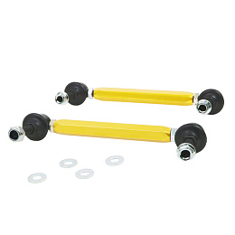 Mnoho nadšenců si neuvědomuje, že účinnost originálních i zejména sportovních stabilizátorů může být výrazně ovlivněna opotřebovanými nebo nevhodnými uloženími, spojovacími tyčemi stabilizátoru a bočními dorazy. Nastavitelné spojovací tyče stabilizátoru Whiteline jsou navrženy tak, aby tyto nároky bez problémů zvládly – využívají špičkové, lehké komponenty a umožňují přesné nastavení délky. Díky tomu lze při montáži eliminovat předpětí stabilizátoru a především zajistit maximální účinnost stabilizátoru pro lepší přilnavost a ovladatelnost vozu.