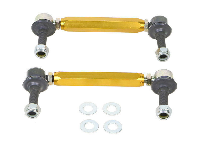 Mnoho nadšenců si neuvědomuje, že účinnost originálních i zejména sportovních stabilizátorů může být výrazně ovlivněna opotřebenými nebo nevhodnými uloženími, spojovacími tyčemi a bočními dorazy. Nastavitelné spojovací tyče stabilizátoru Whiteline jsou navrženy tak, aby tyto nároky splnily – využívají špičkové, lehké komponenty a umožňují přesné nastavení délky. Díky tomu lze při montáži eliminovat předpětí stabilizátoru a především zajistit maximální účinnost stabilizátoru pro lepší přilnavost a ovladatelnost.