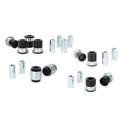 Spojením klíčových silentbloků, dílů pro seřízení geometrie a dalších komponent do jednoho balíčku nabízí Whiteline Essential Kits cenově výhodné úpravy podvozku, které skutečně zvýší přilnavost. Sada obsahuje známý přední kit pro omezení zvedání a záklon, kit pro přesnější řazení, přesné uložení řízení a silentbloky ramen nápravy, které vašemu vozu dodají přesné řízení a výrazně lepší grip.