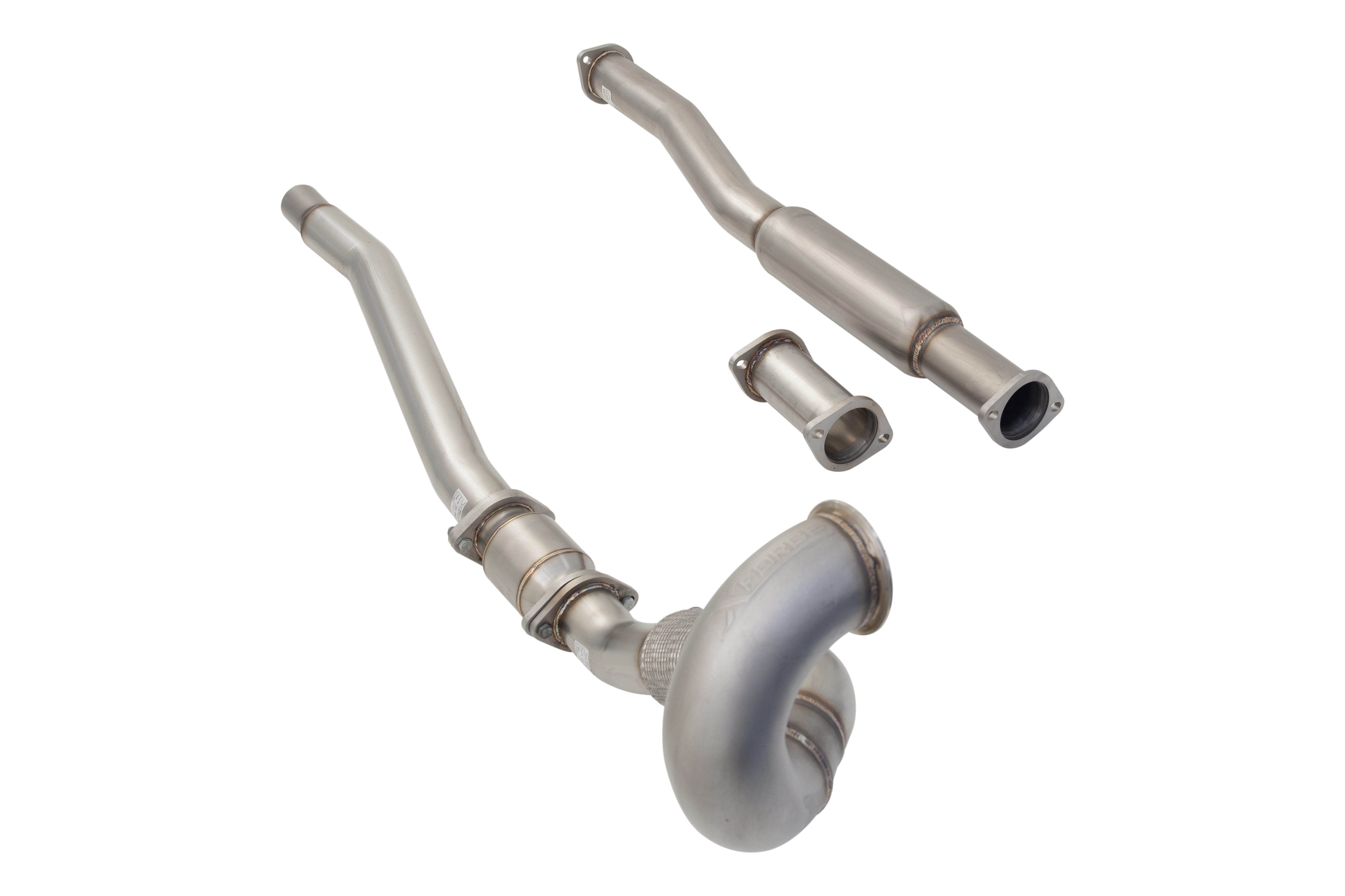 Downpipe je vyroben z nerezové oceli třídy 304, má větší průměr a obsahuje sportovní katalyzátor s vysokým průtokem (200 cpsi) a nerezový flexibilní spoj pro snadnou montáž a spolehlivost.