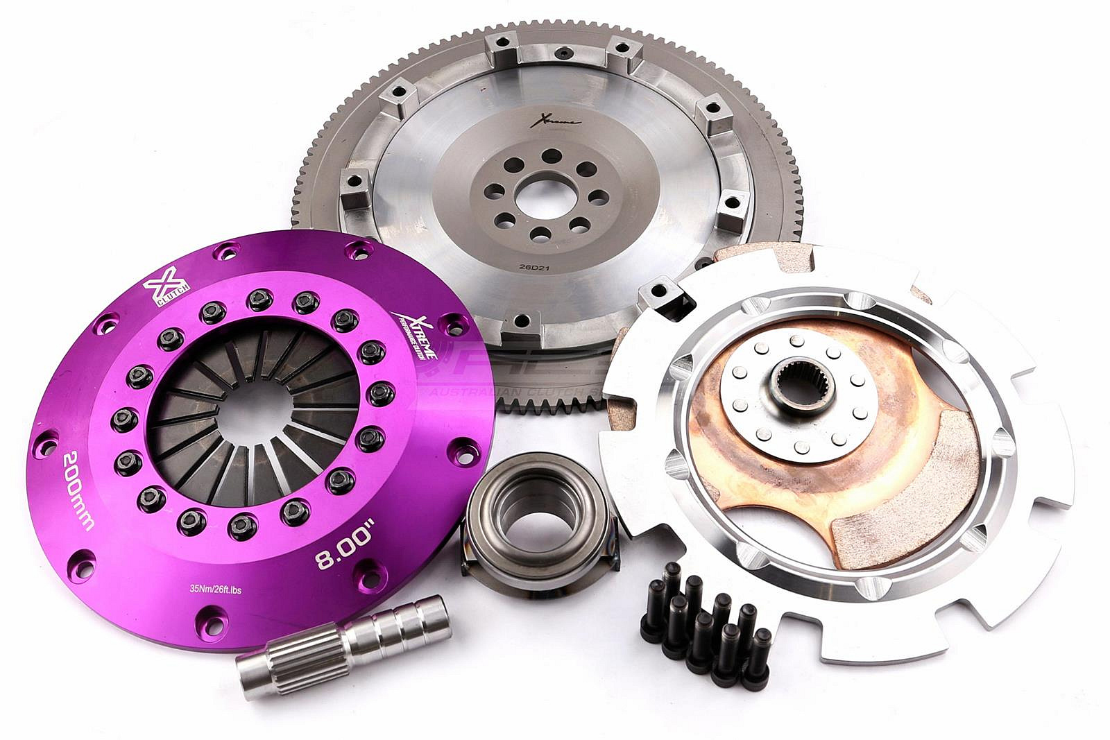 | Závodní spojka Xtreme 200mm byla vyvinuta s důrazem na zákazníky, kteří hledají cenově dostupnou alternativu k ostatním závodním spojkovým sadám na trhu, aniž by museli dělat kompromisy v kvalitě. Spojková sada 200mm Race Clutch obsahuje hliníkový setrvačník, dvoulamelové keramické spojkové lamely s pevným nábojem, sestavu přítlačného disku, vypínací ložisko a unašeč / nebo vnitřní centrální hydraulický válec (CSC). |